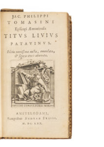 TOMASINI (Jacques-Philippe). — Titus Livius patavinus […]. — Amsterdam, André Frisii, 1670. — Petit in-12°, veau blond, encadrement à froid sur les plats, dos à nerfs, tranches marbrées (reliure XIXe siècle).
