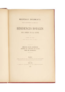CROŸ (Joseph de). — Nouveaux Documents pour l'histoire de la création des résidences royales des bords de la Loire […] Amboise, Blois, Chambord, Jardins du chateau de Blois, Parc de Chambord. — Paris, Alph. Picard et Fils, Éditeur, 1894, &...