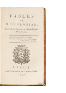 FLORIAN (Jean-Pierre CLARIS DE). — Œuvres. — A Paris, de l'Imprimerie de Didot, 1792-1812. — 24 volumes petit in-12, maroquin rouge à long grains, guirlande dorée encadrant les plats, dos à nerfs orné, tranches dorées (Rel. P. Bozerian).