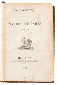 LATOUCHE (Henri de)]. — Fragoletta. — Naples et Paris en 1799. — Bruxelles, Wahlen et Tarlier, 1829. — 2 volumes in-12°, demi-veau brun à petits coins, dos à nerfs orné, tranches marbrées (reliure de l'époque).