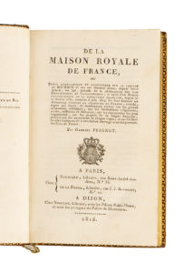 PEIGNOT (Gabriel). • De la Maison royale de France, ou Précis généalogique et anecdotique sur la famille de Bourbon et sur ses illustres aïeux […]. •• Précis chronologique du règne de Louis XVIII, en 1814, 1815 et 1816, indiquant jour...