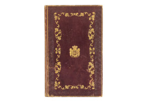 grain, frise estampée à froid et rocailles dorées encadrant les plats, armoiries dorées au centre, dos lisse orné de filets dorés, tranches dorées (reliure de l'époque).