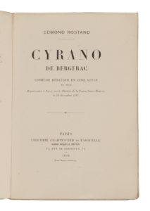 ROSTAND (Edmond). — Cyrano de Bergerac. — Comédie héroïque en cinq actes en vers […]. — Paris, Librairie Charpentier et Fasquelle, Eugène Fasquelle, Éditeur, 1898. — In-8° broché.