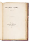 SAINTE BEUVE (Charles-Augustin). — Pensées d'août. Poésies. — Paris, Eugène Renduel, 1837. — In-12, demi-maroquin rouge à coins, filet doré bordant les plats, dos à nerfs orné, non rogné (reliure de l'époque).