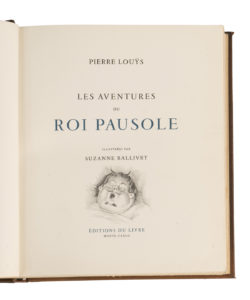 [CURIOSA]. — LOUŸS (Pierre). — Les Aventures du Roi Pausole. — Monte-Carlo, Éditions du Livre, s. d. [1945]. — In-4°, chagrin bronze janséniste, tête dorée, couverture illustrée conservée (L. M. 1958).