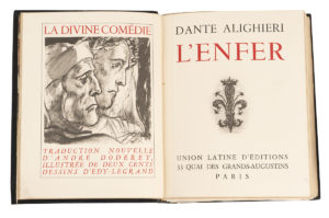 DANTE (Alighieri). — La Divine Comédie. — Paris, Union latine d'éditions, 1938. — 4 volumes in-4°, maroquin noir, dos à nerf, sous emboitages (reliure de l'éditeur).