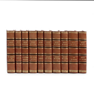 — 10 volumes in-12, demi-basane maroquinée rouge, dos lisse orné, couvertures conservées (reliure de l'époque).