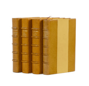 ROUSSEL (Raymond). — Réunion de quatre titres. — Paris Alphonse Lemerre, 1925-1935. — 4 volumes in-12, demi-maroquin citron à bandes, tête dorée, couvertures conservées, non rogné (Semet & Plumelle & Vincent rel. [4e vol.]).