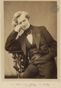 Très belle photographie de Berlioz par Pierre Lanith dit Petit Petit (1831-1909), signée en bas à gauche en rouge par le photographe « Pierre Petit » ; timbre sec en bas au centre Photographie des Deux Mondes.