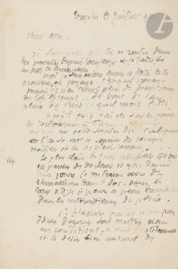 Il est encore en voyage. « Et quel voyage ! Jamais je n’ai trouvé plus de déceptions du côté du temps... du vent de la pluie du froid... quel mois d’été. Vingt fois j’ai été sur le point de retourner à Paris. Et puis on voit un petit sourire du ciel : l’on se met à espérer du temps meilleur et ça ne vient jamais... Le plus clair de tout cela c’est qu’on est perclus de douleurs et que depuis huit jours je me traîne avec des rhumatismes dans le dos, dans le cœur et que je peux à peine travailler dans les intermittences de pluie.