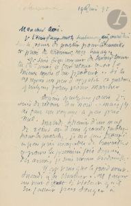 Eugène BOUDIN. — L.A.S., 19 juin 1891, à Ferdinand MARTIN ; 2 pages et demie in-8 à l’encre bleue.