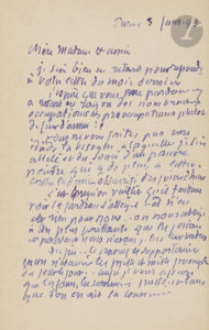 Eugène BOUDIN. — L.A.S., Paris 3 janvier 1893, à Mme MARTIN ; 3 pages in-8 à l’encre violette.