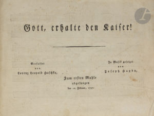 Première édition de l’hymne national du Saint-Empire, créé et publié pour l’anniversaire de l’Empereur Franz (François II), le 12 février 1797, sur des paroles de Lorenz Leopold Haschka. La mélodie de ce « Kaiserlied » (Hob. XXVIa :43), que Haydn a utilisée pour le thème varié du second mouvement de son Quatuor en ut majeur op. 76 n° 3 dit « l’Empereur », est devenue, sur de nouvelles paroles, celle de l’hymne national allemand.