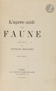 – 1) L’Après-midi d’un Faune/ Eglogue // Édition définitive. Paris, À La Revue Indépendante, [fin février] MDCCCLXXX[V]II (sic, correct sur la couv.), plaquette pet. in-12 br., emboîtage moderne en toile, pièce de titre basane au dos.
