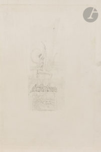 Félicien ROPS. — La Grande Lyre, avec l’inscription Ex Libris, frontispice héliogravé par le photograveur [Paul Dujardin] pour les Poésies de la Revue Indépendante, 1887 [voir supra]. 1a) Contre-épreuve unique de l’hélio barrée du...