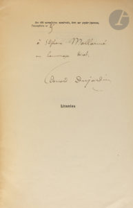 [Mallarmé/Bonniot/Henry Charpentier/Paul Morel]. Paris, Sotheby’s, 15/10 / 2015 n° 32.