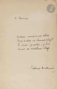 Avec une L.A.S. au même (1 p. sur double ff. in-12 simili-Japon) [Marchal (Corr. 2019, n° 1266)]. Mallarmé écrit à Hoffschmidt chez Edmond Picard, son hôte au 47 (et non 87) av. de la Toison d’or, ce mardi [11 février] : « Merci, vous me voyez confus, j’accepte et j’écris par le même courrier à Monsieur de Laveleye dont je reçois un mot, que vous aviez ma parole »… L’invitation du baron de Laveleye, professeur à l’Université de Liège, arriva ce même jour, mais Napoléon avait déjà écrit le 10 à Mallarmé qu’il lui avait dit sa « priorité d’intention et il veut bien abandonner, en ma faveur, ses droits d’hospitalité » (Austin IV p. 49 pour les deux invitations liégeoises).