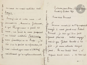 Mallarmé remercie d’abord Deman de l’envoi d’un exemplaire [de Pages, voir n° 66] « envoyé à mon jeune ami Robert Picard [fils de l’écrivain et collectionneur belge Edmond Picard (1836-1924)], je sais qu’il a fait grand plaisir. Votre voyage ? voici que Juillet touche à sa fin, je vous attends chaque jour. Il me tarde tant, et depuis deux mois, de causer de Vers avec vous, et de l’établir : certes, il vaut mieux mille fois de vive voix ; mais si vous deviez ne pas venir, commençons, par lettres. J’ai peur de voir finir mes vacances, sans rien d’entrepris ; après quoi, je manquerai de liberté.