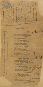Épreuve inconnue pour les Chansons bas, avec le manuscrit autographe d’un poème.