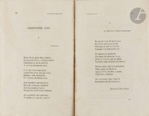 *Stéphane MALLARMÉ. — Chansons Bas I (le Savetier)/ II (la Marchande d’Herbes Aromatiques). — La Revue blanche, 15 mai 1892, n° 8 nouvelle série t. II, imposées élégamment en vis-à-vis (p. 288-89) ; in-8 br. — Chemise dos chagr....