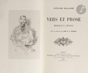 *Stéphane MALLARMÉ. — Vers et Prose. Morceaux choisis /Avec un portrait par James M. N. Whistler. — Paris, Perrin et Cie, 1893 [peu avant le 16 novembre 1892] ; in-12 demi-maroq gris bordé d’un filet dor., dos lisse, t. dor., non rogné,...
