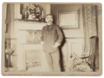 — On joint, de cette série, le Mallarmé debout à côté du poêle dans sa salle à manger (cf. n° 74). Épreuve albuminée montée sur le carton d’origine impr. en rouge. Tirage surexposé où le Manet n’est pas lisible. Cachet coll. Claude Buffet.