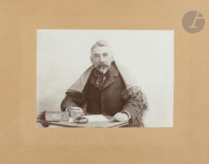 N.B. : Le cat. d’Ed.-H. Fischer reproduit l’héliogravure de l’édition NRF des Poésies de 1913 (Galantaris, 2014, p. 477-478 avec un cadrage aux seules épaules). C’était avant la parution des deux épreuves de la succ. Mallarmé/Morel (Sotheby’s, 15/10 / 2015 n° 148-49).
