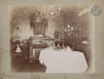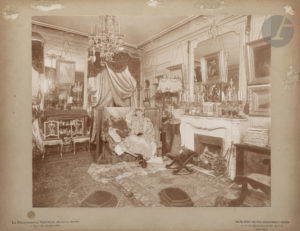 7) Le boudoir à l’éléphant oriental avec deux photos de Mallarmé pendues dans le coin arrière gauche (22,1 x 28,2). Au mur à droite, probablement le cavalier d’Édouard Detaille légué au nancéien Lucien Cuénot.