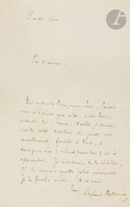 Stéphane MALLARMÉ. — L.A.S. « Stéphane Mallarmé » et poème autographe signé « SM », [Paris 26 décembre 1895], à Méry Laurent ; 1 page in-8 sur papier vergé ; et 1 page in-18 sur sa carte de visite à l’adresse 89 rue de Rome.