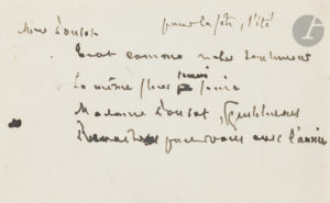 Stéphane MALLARMÉ. — Poème autographe, [20 juillet 1896] ; 1 page oblong in-16 (6,5 x 10,5 cm) sur papier vélin fin.