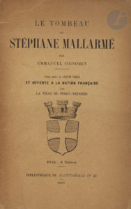 *[Stéphane MALLARMÉ]. — Le Tombeau de Mallarmé. — 2 exemplaires familiaux. – Emmanuel SIGNORET. [En couv. :] Le Tombeau de Stéphane MALLARMÉ. — Bibliothèque du Saint-Graal (n°2), 1899 ; in-8 br., cordonnet de soie bleue.