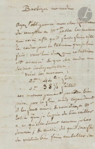 Jean-François MILLET (1814-1875). — L.A.S., Barbizon mercredi, à Théodore ROUSSEAU ; 2 pages in-8.