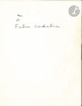 Au dos du feuillet, amusant envoi autographe : « à Fabra Cadabra ».