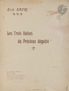 *Erik SATIE (1866-1925). — Les Trois Valses du Précieux dégoûté (Paris, Rouart, Lerolle & Cie, 1916) ; in-fol. de 6 p. et couv. (couv. détachée, fentes et petites déchirures marginales, légère mouillure).