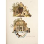 Édition originale et tête de collection complète de ses 128 planches en couleurs (sauf 8 en noir) : modèles de meubles, architectures et plans de jardins, par Rhynl Roeden.