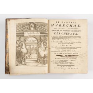 SOLLEYSEL. — Le Parfait maréchal, qui enseigne à connoître la beauté, la bonté et les défauts des chevaux, les signes & les causes des maladies ; les moyens de les prévenir ; leur guérison, le bon ou mauvais usage de la Purgation & de la...