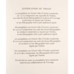 Tirage à 900 exemplaires numérotés sur grand vélin d'Arches et 20 hors commerce, celui-ci sur Arches non numéroté.