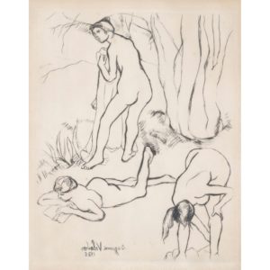SUZANNE VALADON (1865-1938) — Trois nus sous un arbre — Pointe-sèche sur vélin d'Arches — Signée et datée dans la planche