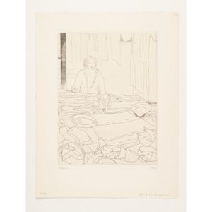 Jean Emile LABOUREUR (1877 - 1943) — La Repasseuse, 1937 — Eau-forte, burin et pointe sèche en 1er état avant des ombres au premier plan — Signée et annotée "2/4 ep."