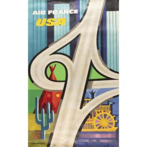 AFFICHE — Air France USA — Impression offset — Nombreuses cassures, plis, infimes déchirures sur les bords non entoilée
