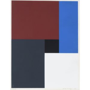 Print in white, blue, black, brown and grey, signed, dated ‘82’ and numbered ‘34/50', frame