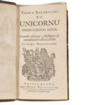 Seconde édition rare, après celle publiée à Padoue en 1645, de cet ouvrage sur la licorne. De la bibliothèque de J. Casterman avec ex-libris.