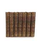 tranches rouges (reliure de l'époque). Petits manques aux coiffes, qqs mors fendillés, coins émoussés. Exlibris manuscrit caviardé sur l'une des premières pages 2 frontispices, vignettes, 38 planches dont repliées et 1 carte repliée. Les six premiers volumes de ce monuments d'érudition, comprenant : 1 Allégorie orientales, ou le fragment de sanchoniation qui contient l'histoire de Saturne suivie de celles de Mercure et d'Hercule, et de ses douze travaux - 1773 2. Considéré dans l'Histoire naturelle de la parole ou grammaire universelle et comparative - 1774 3. Considéré dans l'Histoire naturelle de la parole ou origine du langage et de l'écriture - 1775 4. Considéré dans l'Histoire civile, religieuse et allégorique du Calendrier ou Almanach - 1776 5. Considéré dans ces origines françoises ou dictionnaire étymologique de la langue françoise - 1778 6. Considéré dans les origines latines, ou dictionnaire étymologique de la langue latine - 1779