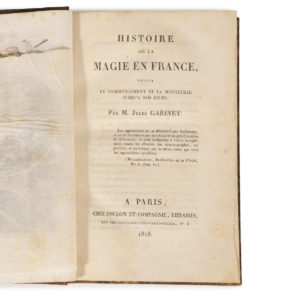 ESOTERISME]. GARINET (Jules). Histoire de la magie en France, depuis le commencement de la Monarchie jusqu'à nos jours. A Paris, Chez Foulon et Compagnie, 1818. In-8°, demi-veau blond, dos lisse orné (reliure de l'époque).