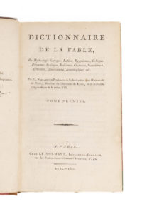 NOËL (Fr.). Dictionnaire de la fable, ou mythologie grecque, latine, égyptienne, celtique, persanne, syriaque, indienne, chinoise, scandinave, africaine, américaine, iconologique, etc. A Paris, Chez Le Normant, an IX - 1801. 2 volumes in-8°,...
