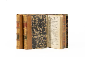 RABELAIS. OEuvres (…). Edition nouvelle. A La Haye, et se trouve à Paris, Hôtel de Bouthillier, 1789. 3 volumes in-12, demi-veau blond, dos à nerfs orné, tranches marbrées (reliure XIXe). Dos légèrement passé, frotté.