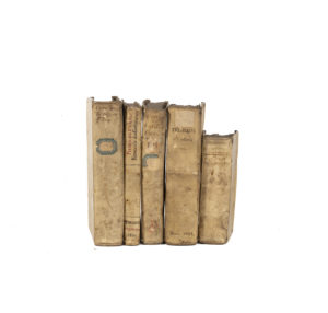 CAMBRY (P.de ). Economie des ecclésiastiques. A Tournay, Vve Adrien Quinque, 1656. In-12, vélin, titre manuscrit au dos. Ex-libris manuscrit au titre. - DREXEL (Jérôme). Heliotropium seu conformatio humanae voluntatis cum divina [...]. Duaci, Baltazar Belleri, 1633. Petit in-16, vélin ivoire (reliure de l'époque). Titre frontispice. Titre manuscrit au dos, usures d'usage. - MONTMORENCY (François). Cantica et Idyllia. Duaci, Gerardum Pattenium, 1633. In-12, vélin, titre manuscrit au dos. Ex-libris manuscrit au titre. - TURSELLINI (Horace). Historiarum ab origine mundi usque ad annum 1598 [...]. Duaci, Baltazar Belleri, 1623. In-12, vélin, titre manuscrit au dos. Ex-libris manuscrit au titre.