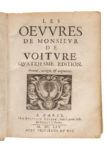 VOITURE (Vincent). Les Oeuvres de Monsieur de Voiture. Quatrièsme édition. Revuë, corrigée, & augmentée.‎ A Paris, chez Augustin Courbe, 1654. In-4°, vélin. Illustré de 2 frontispices, dont un portrait de Monsieur de Voiture gravé par...