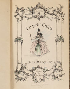 GAUTIER (Théophile). Le Petit chien de la marquise. Préface par Maurice Tourneux. Paris, L. Conquet, 1893. In-12, maroquin gris, triple filet doré encadrant les plats, dos à nerfs orné, tête dorée, dentelle int., couvertures conservées...