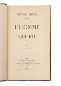 HUGO (Victor). L'Homme qui rit. Paris, Librairie internationale, A. Lacroix, 1869. 4 volumes in-8°, demi-basane brune, dos lisse orné (reliure de l'époque). Dos frotté. Intérieur très frais. Edition originale.